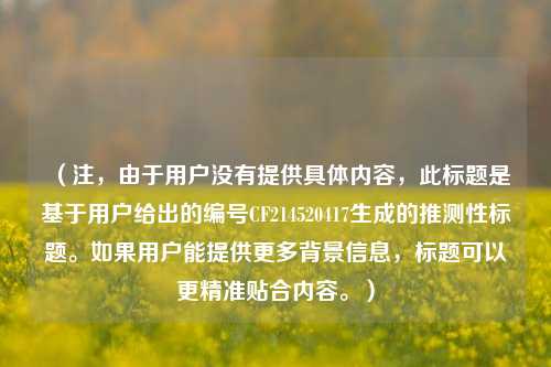 “CF214520417”可能由字母和数字组合而成,这种结构常见于以下几种场景: