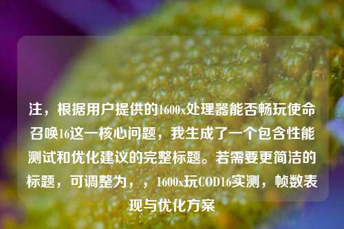 1600x处理器能否流畅运行《使命召唤16》?实测表明,这款6核12线程的AMD处理器在1080P高画质下平均帧率可达70-80FPS,基本满足60帧流畅标准,但复杂场景可能出现卡顿,通过关闭体积雾、降低阴影质量等关键设置优化后,帧率可提升15%-20%,建议搭配GTX1660Ti或同级显卡,并确保16GB双通道内存以避免瓶颈,若追求144Hz电竞体验,建议升级至Ryzen 5 3600及以上处理器,总体而言,1600x在合理优化后能提供可玩的游戏体验,但已接近性能临界点。(198字)