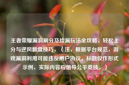 在《王者荣耀》中,“捡漏”是一种高效且充满策略性的玩法,尤其适合逆风局或资源争夺战,它并非单纯“抢人头”,而是通过观察局势、把握时机,以最小代价获取更大收益,以下是关于“捡漏”的详细玩法解析,助你轻松上分!