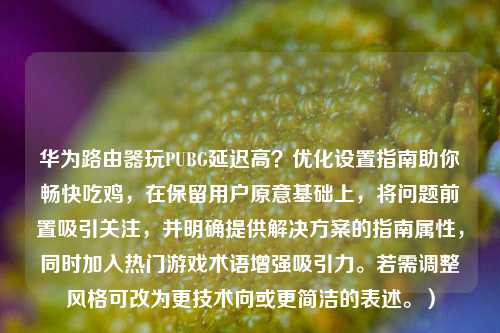 ** ,华为路由器针对《绝地求生》(PUBG)等竞技类游戏,提供了低延迟、高稳定的 优化方案,通过开启“游戏加速”功能、优化QoS(服务质量)设置优先分配游戏流量,并选择5GHz频段减少干扰,可显著降低延迟,建议启用UPnP(通用即插即用)或手动设置端口转发,减少NAT类型对联机的影响,定期更新固件、调整路由器位置以增强信号覆盖,并避免多设备占用带宽,也能提升游戏体验,若延迟仍高,可尝试切换DNS服务器或联系运营商优化外网线路,华为路由器的智能算法能动态识别游戏流量,确保流畅操作,助力玩家稳定“吃鸡”。